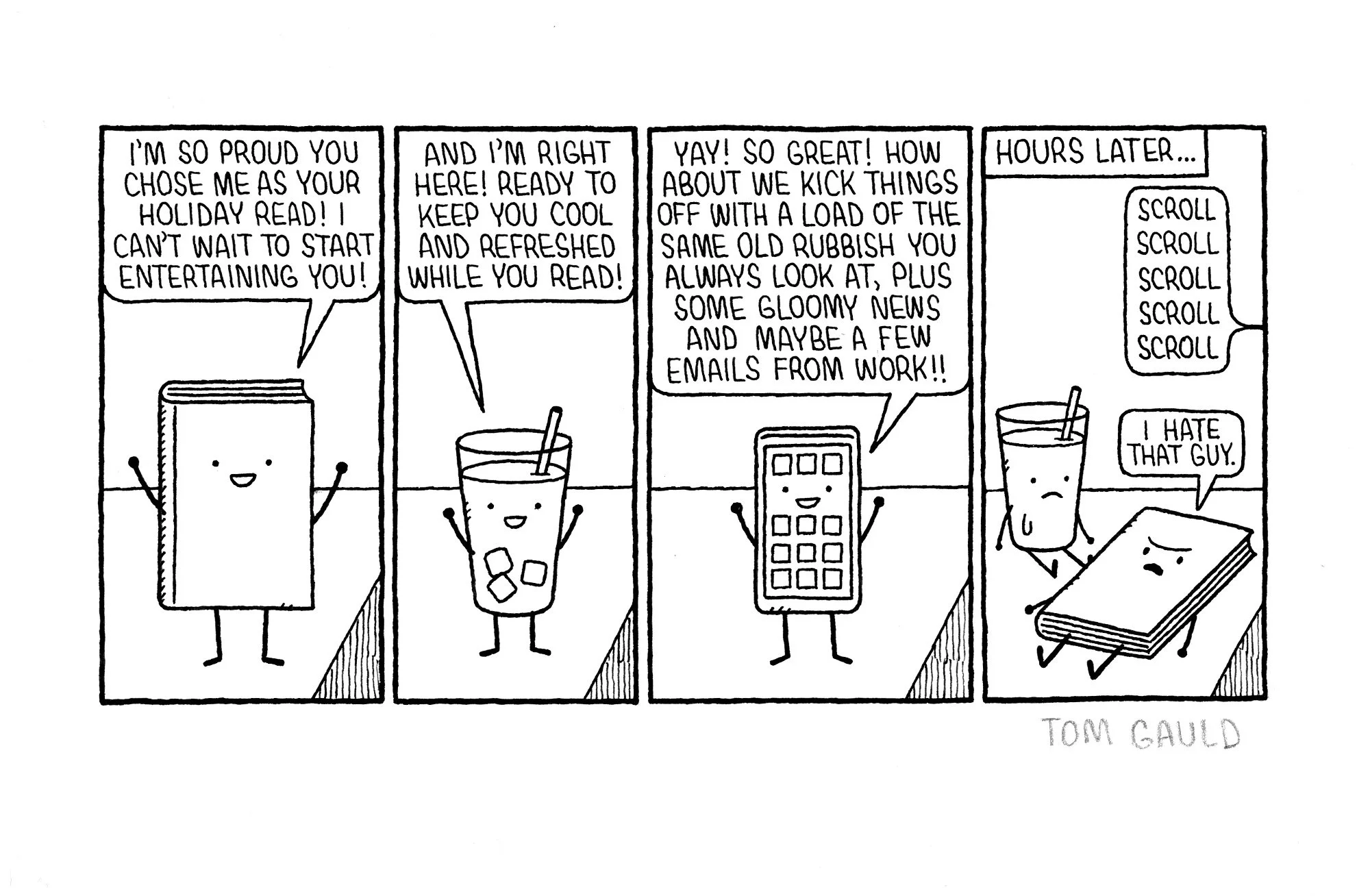 HOLIDAYS. Ballpen and correction fluid on paper. Approximate size: 12 x 20cm drawing on 21 x 29cm paper. Price £360