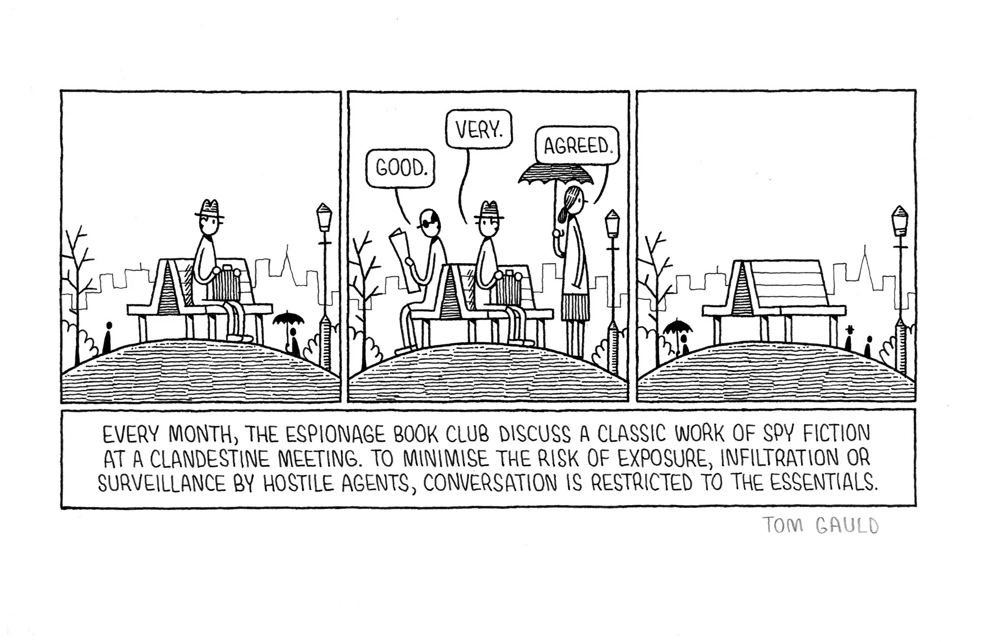 ESPIONAGE. Ballpen and correction fluid. Approximate size: 12 x 25cm drawing on 21 x 29cm paper. Price £360